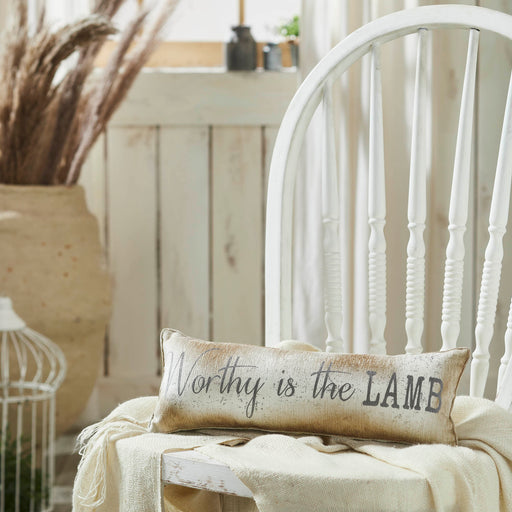 View full detailsWorthy is the Lamb Pillow enriches your home with a deep spiritual message encapsulated in a stylish design. This 5x15 rectangular pillow features ...