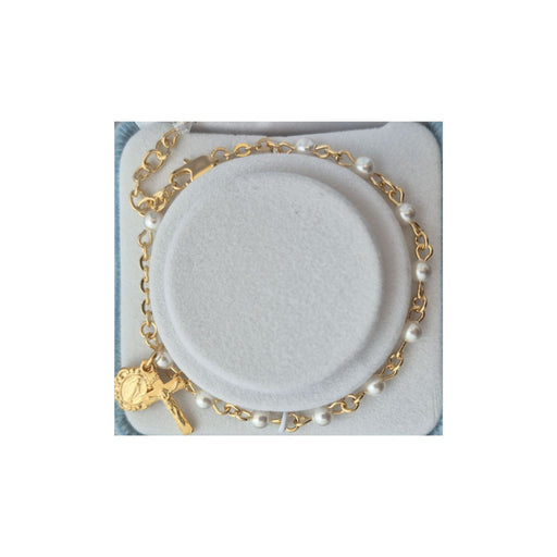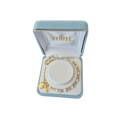 4mm white imitation pearl beads. Gold plated. Deluxe velvet box. Made in the USA.