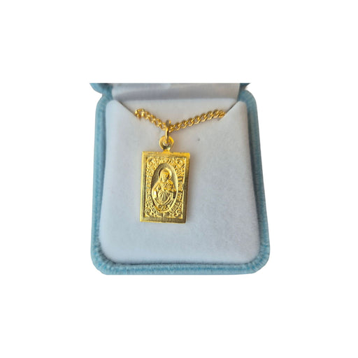 Scapular-Sacred Heart of Jesus, Our Lady of Mount Carmel double sided medal. 16kt gold over sterling silver. Made in USA. Deluxe velvet gift box.