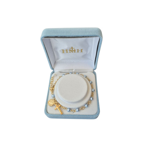 4mm Blue Imitation Pearl Beads. Gold Plated. Deluxe velvet box. Made in the USA.
