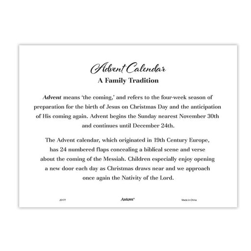 A great way to countdown the days till Christmas! Our Advent Calendars feature 24 flaps that open to reveal a small picture and bible verse that te...