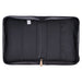 Coordinating gold hardware attaches the faux leather lay-flat handle to the spine. A zipper with a smooth gliding zipper pull, also in gold, is engraved with a cross. A slip pocket on the back panel is a useful feature to keep notes and small notebooks. Inside the Bible cover are two pen loops that allow you to conveniently carry both a pen and a highlighter.