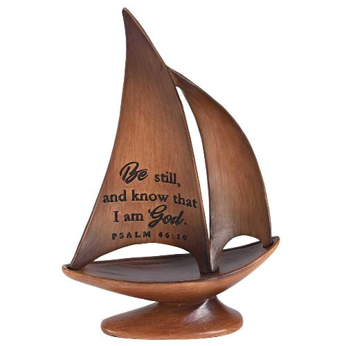 Tabletop Sailboat Decor With Inspiring Words. Made Of Resin, 5-1/8 x 8-1/2. Psalm 46:10: Be Still, And Know That I Am God.