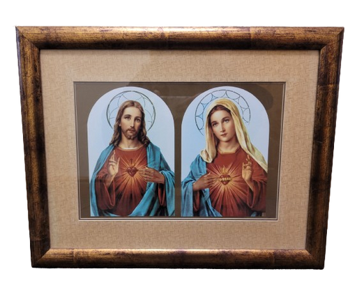 Sacred Heart of Jesus and Immaculate Heart of Mary Arched Matte Frame 17" x 22"