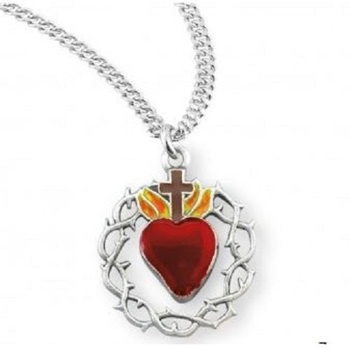 Sterling silver "Crown of Thorns" medal with a red enameled heart. The 1" pendant is made using the finest grade sterling silver which enables the ...