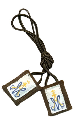 Small scapular with brown cord.
