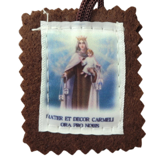 Brown scapular from Medjugorje with Sacred Heart of Jesus and Our Lady of Mt. Carmel.