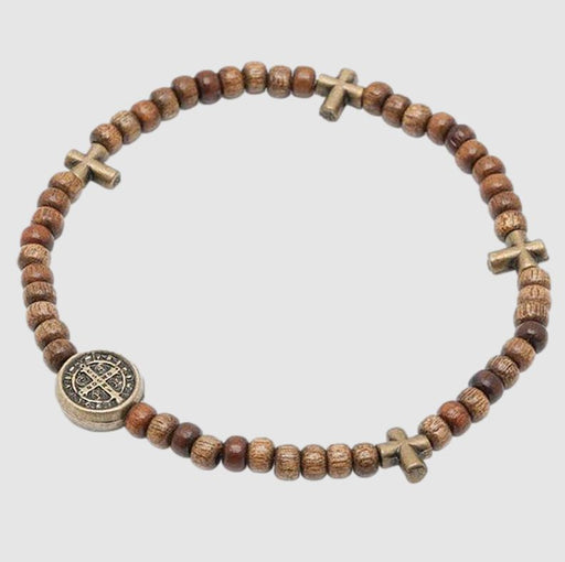 St Benedict Rosary Bracelet Brown Wood