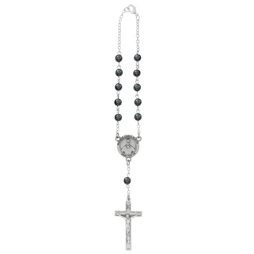 6MM HEMATITE CARLO ACUTIS AUTO ROSARY, CARDED. MADE IN THE USA.