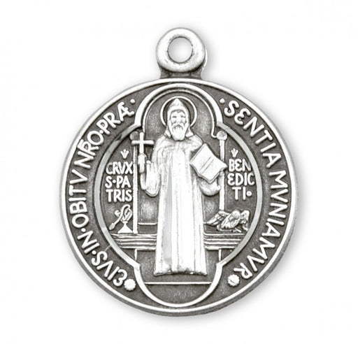 Saint Benedict round double sided medal-pendant. Solid .925 sterling silver. Saint Benedict is the protector against evil. Medal is die struck. Han...