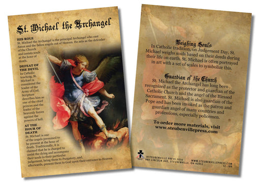 This card is the perfect tool to teach your parishioners, students, family, and friends about the glorious St. Michael. Whether placed near a statu...