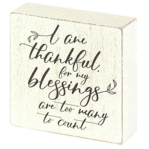 "I am thankful, for my blessings are too many to count." A great little reminder to choose gratitude each day, this tabletop plaque is 3" x 3" x 1"...