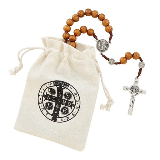 This Saint Benedict Paracord Rosary features 8mm wood beads, 1.5" crucifix, silver plated Saint Benedict Medal center piece and Our Father Beads on...