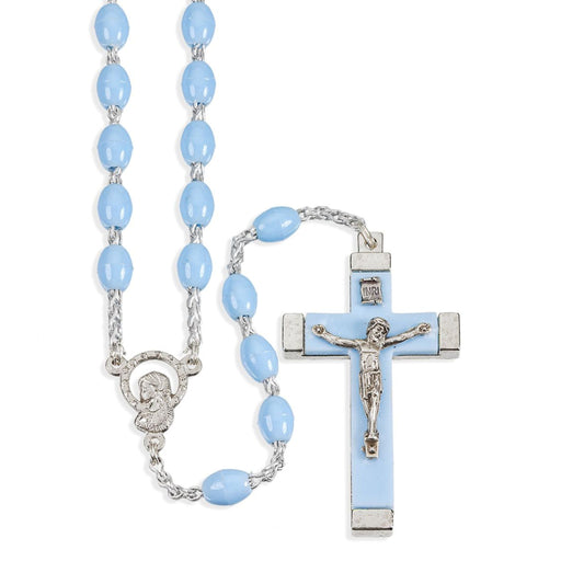 High-quality beads with a deluxe crucifix and center at affordable prices. Our 6 mm Blue Oval Plastic Quadruple-Linked Bead Rosary comes with a sil...