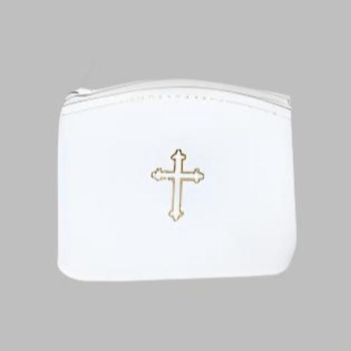 Rosary case 3" x 2.5" White leather zipper with gold cross