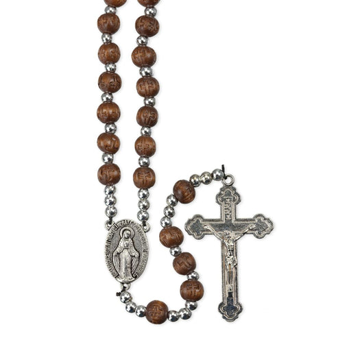 High-quality beads with a deluxe crucifix and center at affordable prices. Our 7 mm Dark Brown Wood Carved Cross Bead Rosary with cord and 2mm silv...