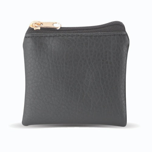 Keep your Rosary safe in this simple yet elegant pouch! Black Leather Rosary Case with Cross and Zipper closure Pouch measures 3" x 2.5