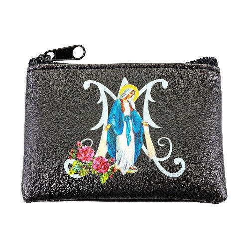 3 1/4" x 2 1/2" Our Lady of Grace Black Leatherette Rosary Pouch