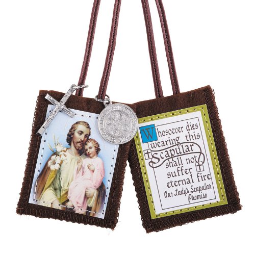 These scapulars are colorful, durable and very affordable. Each features a traditional full-color Catholic image of St. Joseph on a brown cord with...