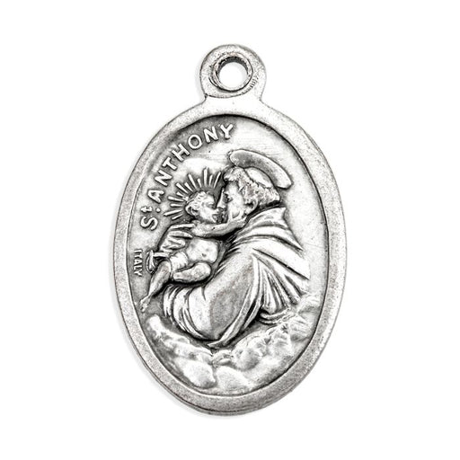 1" Oval Oxidized Saint Anthony Pray for Us Medal