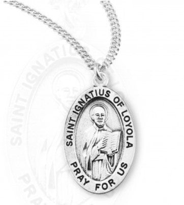 Saint Ignatius of Loyola oval medal-pendant. Solid .925 sterling silver. Detail depicts him holding a book in priests clothing. Saint Ignatius of ...