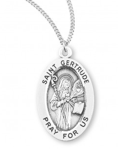 Saint Gertrude oval medal-pendant. Solid .925 sterling silver. Detail depicts her holding a staff and a book. Saint Gertrude is the Patron Saint o...