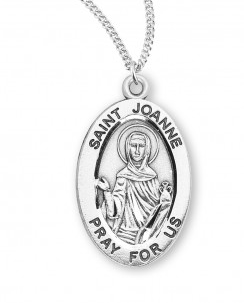 Saint Joanne oval medal-pendant. Solid .925 sterling silver. Detail depicts her with her hands raised in prayer. Saint Joanne is the Patron Saint ...