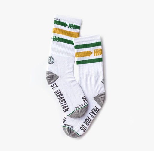 View full detailsSt Sebastian White with Green & Gold Adult Socks