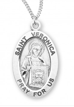 Saint Veronica oval medal-pendant. Solid .925 sterling silver. Detail depicts her holding an image of Christ. Saint Veronica is the Patron Saint o...