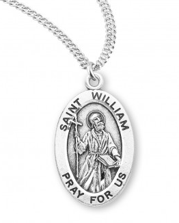 Saint William oval medal-pendant. Solid .925 sterling silver. Detail depicts him with a book and a cross pendant. Saint William is the Patron Sain...
