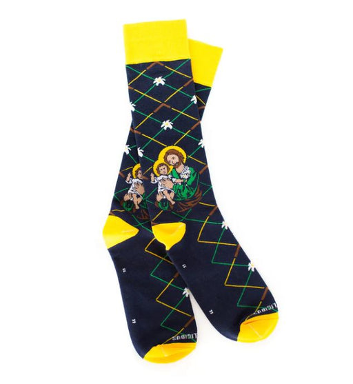 St. Joseph socks have so much more to them then just his image! If you look closely you will notice the carpenter's square woven into the socks pat...