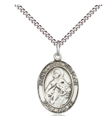 · St. Maria Goretti Medal.· Medal Measures 3/4-inch tall by 1/2-inch wide.· Chain is 18 Inches in length Light Rhodium Light Curb Chain with Lobste...