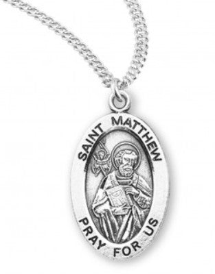 Saint Matthew oval medal-pendant. Solid .925 sterling silver. Detail depicts Saint Matthew is the Patron Saint of tax collectors and accountants. ...