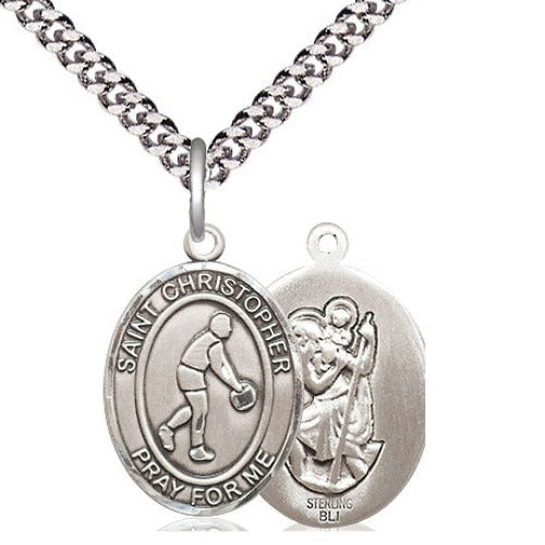 St. Christopher/Basketball Medal. Medal Measures 3/4-inch tall by 1/2-inch wide. Chain is 20 Inches in length. Heavy Curb Chain with Lobster Claw ...