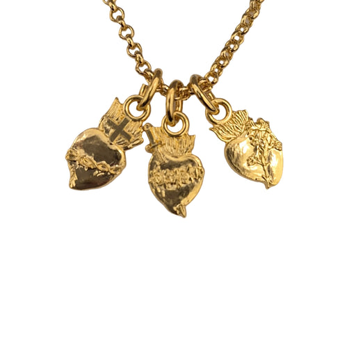 Three Hearts J.M.J Gold over Sterling on 18" Chain