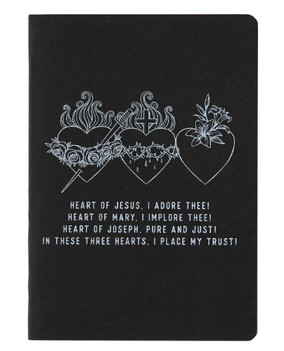 This lightweight notebook is great for taking the faith with you everywhere you go! Features a black kraft cover with image of the three Sacred He...