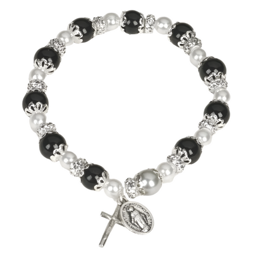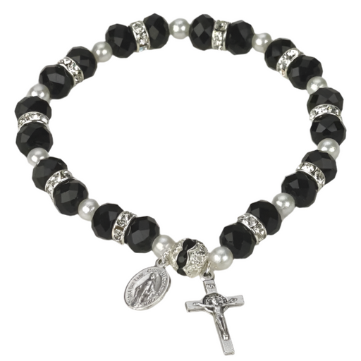 Product Overview CRYSTAL & BLACK ST. BENEDICT STRETCH BRACELET, CARDED.