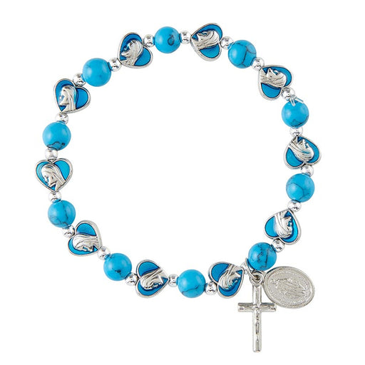 This Blessed Mother Heart bracelet features beautiful faux turquoise stone round beads and heart shaped Blessed Mother beads. Features Miraculous m...