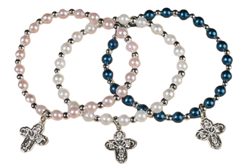 BRACELET - BLUE PEARLS - MIRACULOUS AND CRUCIFIX
