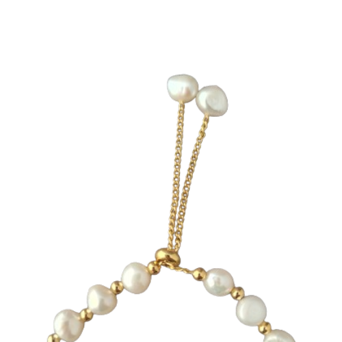 Adjustable Child's bracelet 6mm white pearl with gold plate crucifix