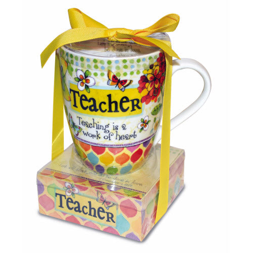 This is a great teacher gift. Colorful mug states, "Teaching is a work of heart," and coordinated memo pad says simply, "Teacher." Teachers do so ...