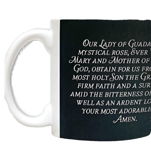 Enjoy your coffee, tea, and hot cocoa in this unique ceramic mug. This 11 oz. high quality coffee mug features Our Lady of Guadalupe on the front a...