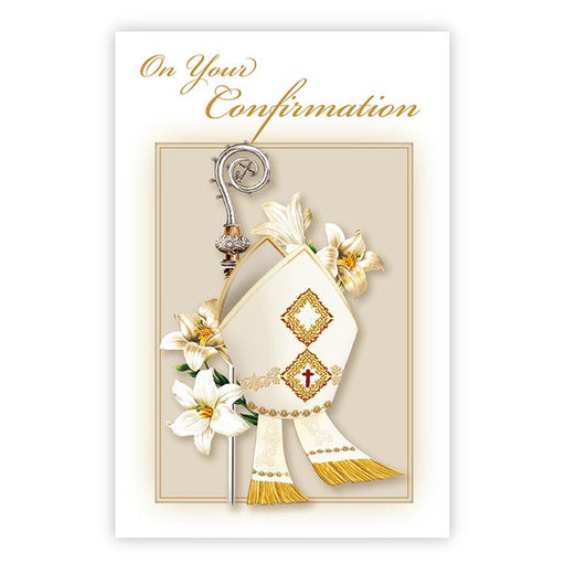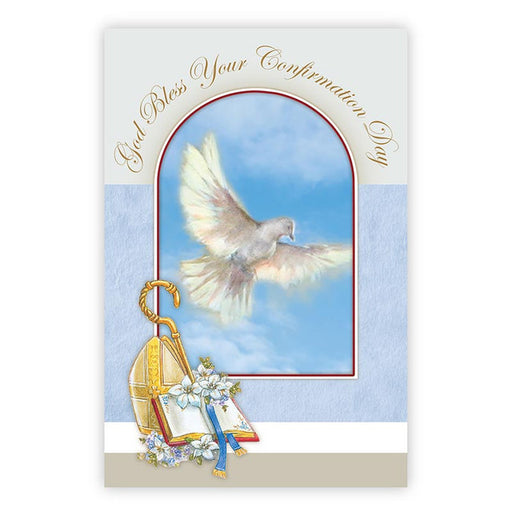 Inside reads: "May the Holy Spirit fill you on your Confirmation Day, and guide you through your future, as you follow in His way. May His peace be...