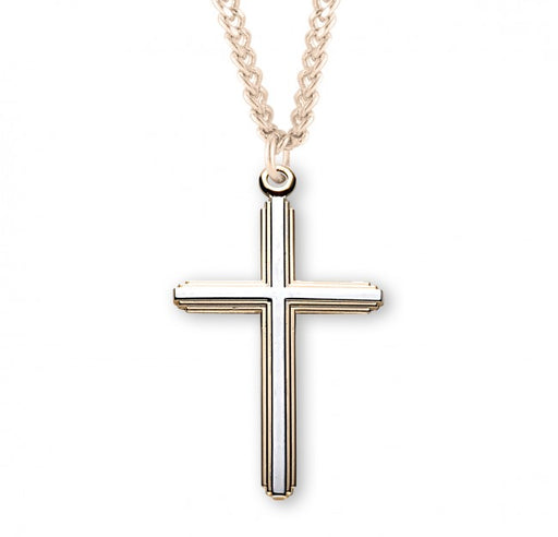Two-tone inlay cross. 16kt Gold over solid sterling silver. Hand polished and engraved by New England Silversmiths. Dimensions: 1.7" x 1.0" (43mm x...