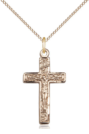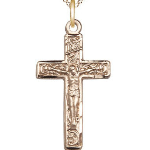 CRUCIFIX - 14KT GOLD FILLED 1" SWIRL DESIGN - 18" GOLD FILLED CHAIN
