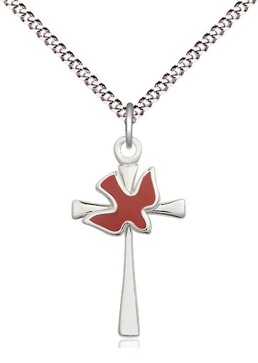 Cross Sterling Silver with Red Enamel Dove on 18" Chain
