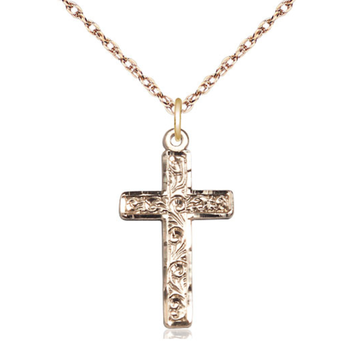 Cross with Swirl Design 14kt Gold Filed on 18" Chain