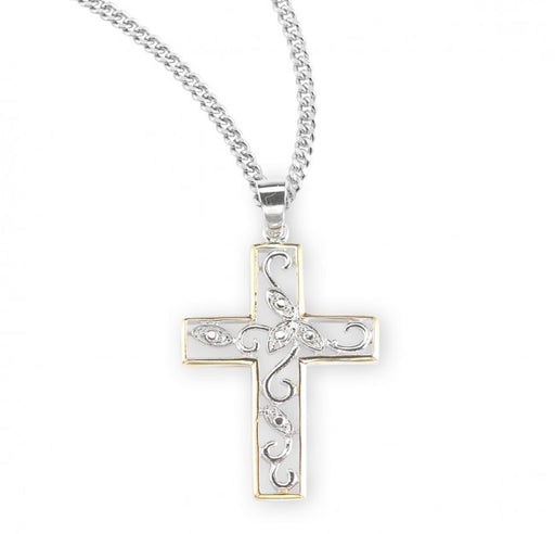 Cross Two Tone Vine Sterling Silver and Cubic Zirconia on 18" Chain