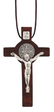 The St. Benedict medal contains symbols and text related to the life of St. Benedict of Nursia and is used invoke protection from spiritual and phy...