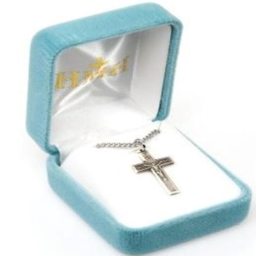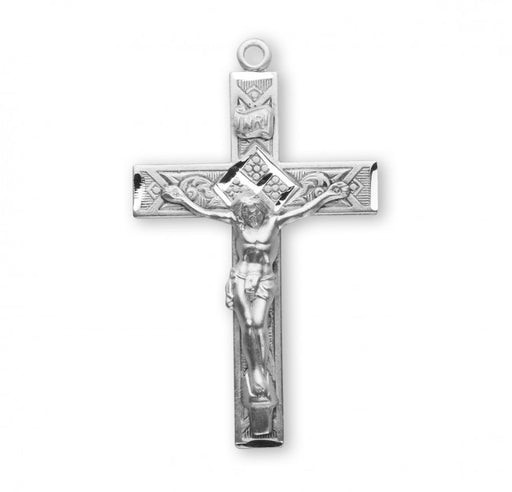 View full detailsCRUCIFIX - ENGRAVED STERLING SILVER - 24" RHODIUM CHAIN